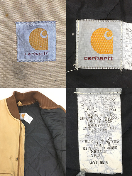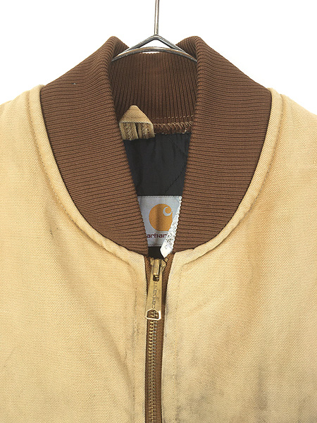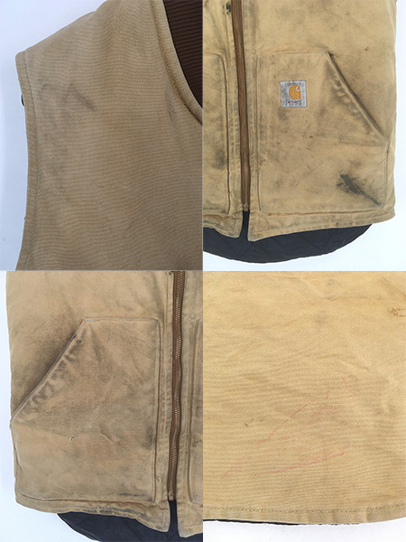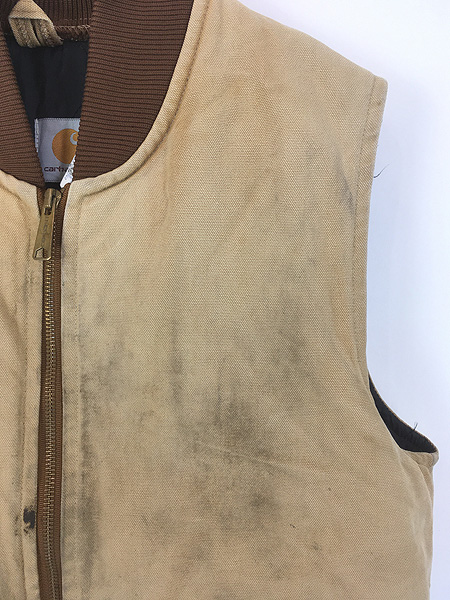 古着 90s USA製 Carhartt フェード ブラック ダック 首リブ 腰ゴム パデット ベスト 茶 M