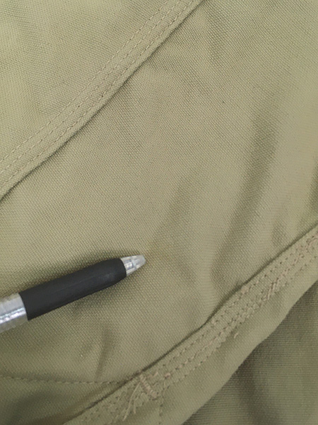 襟・身頃ともにダック地素材・裏地チェック柄。