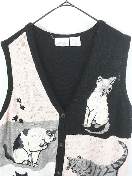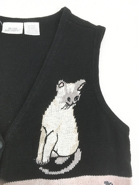 レディース 古着 BLAIR BOUTIQUE 猫 ねこちゃん アニマル ニット ベスト M