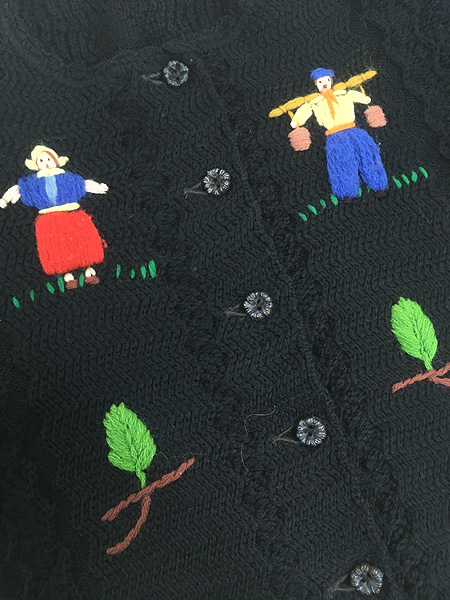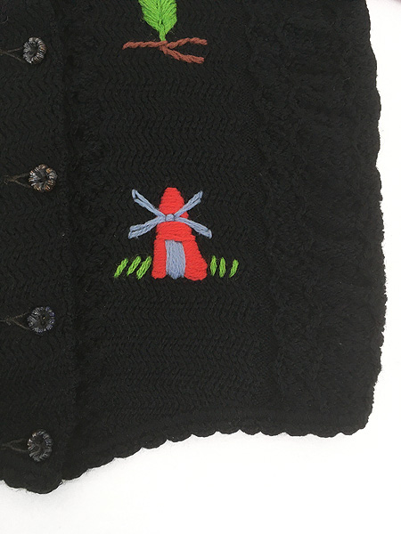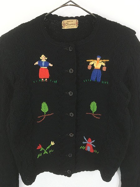 レディース 古着 60s スイス製 Chums 農家 風車 刺しゅう ウール ニット カーディガン S位