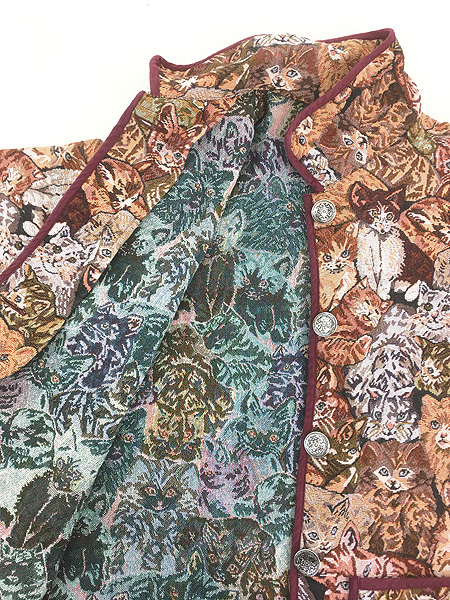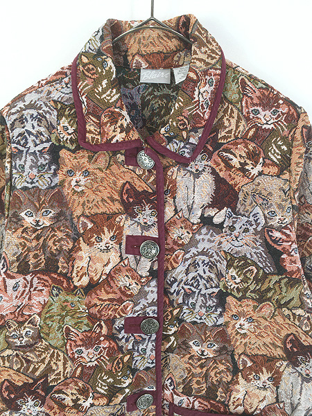 レディース 古着 BLAIR 猫 ねこちゃん アニマル デザイン パイピング デザイン ゴブラン ジャケット S