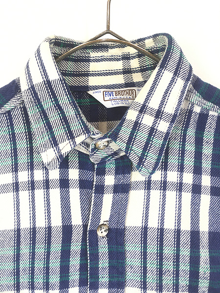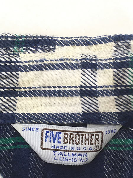 古着 80s USA製 FIVE BROTHER TALLMAN ブルー チェック ヘビー フランネル シャツ ヘビネル L