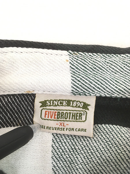 古着 90s FIVE BROTHER グリーン ブロック チェック ヘビー フランネル シャツ ヘビネル XL