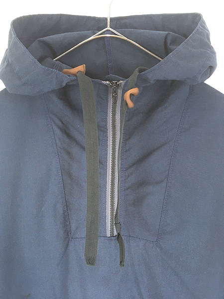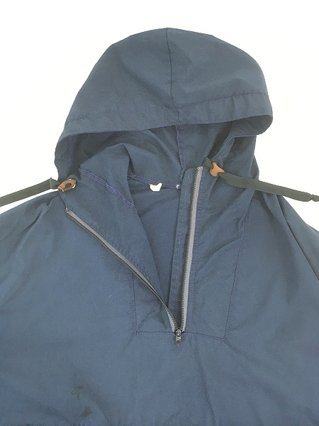 古着 70s WoolRich コットン ハーフジップ プルオーバーアノラック パーカー フーデッド ジャケット NAVY XL