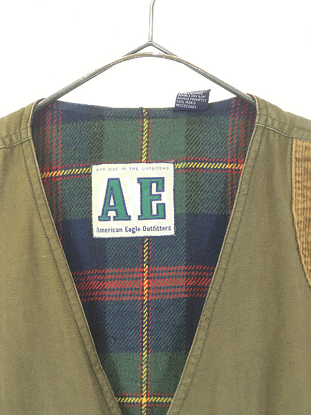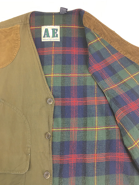 古着 90s American Eagle チェック ネル ライナー コットン キャンバス ハンティング ベスト XL