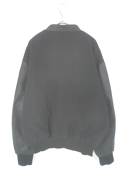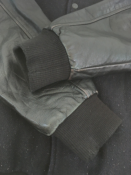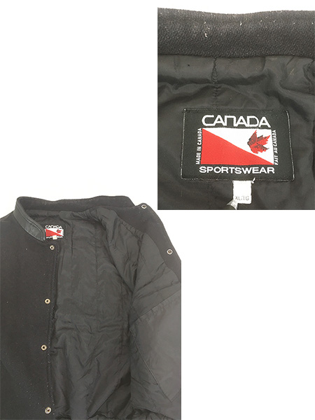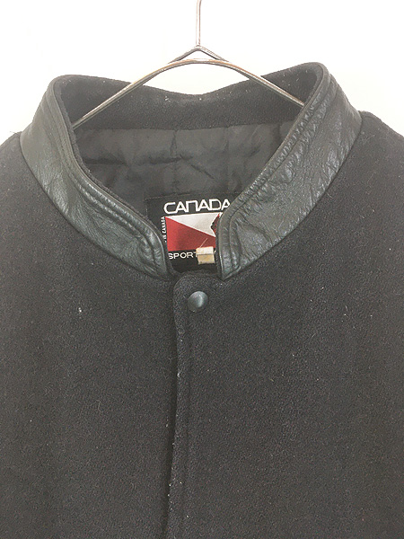 古着 90s Canada製 Canada Sportswear 本革 レザー メルトン ウール スタジアム ジャケット スタジャン オールブラック XL