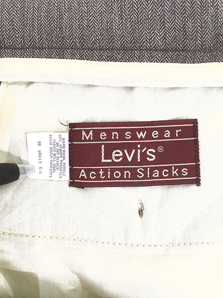 古着 80s Levi's Action Slacks ノータック ヘリンボーン ストライプ スラックス パンツ ストレート W34 L33