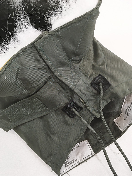 人気の CWU-45/Pフライトジャケットにボタンで取り付け可能な後付けフード。難燃性の高いアラミド素材、首元ベルクロのストラップ、ファーもしっかり残っています。比較的状態の良い1点です。