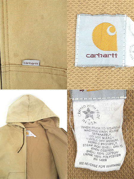 古着 80s USA製 Carhartt 裏地 メッシュ フェード ブラウン ダック アクティブ パーカー ジャケット XL