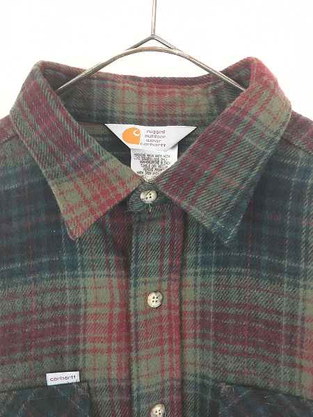 古着 90s USA製 Carhartt マルチ チェック ヘビー フランネル シャツ ヘビネル XL ミント!!