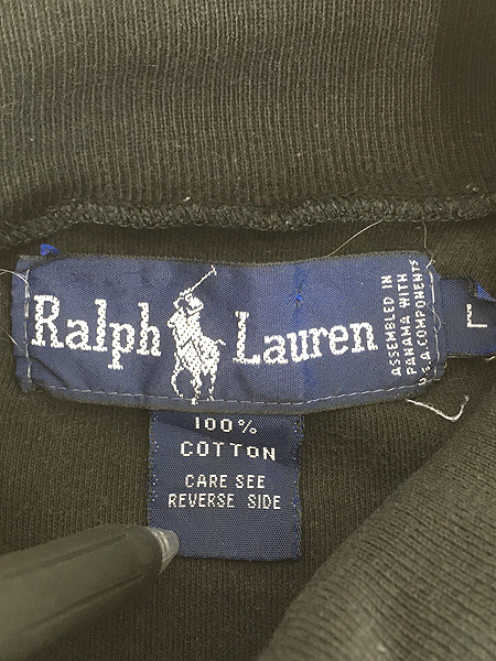 古着 90s Ralph Lauren ワンポイント ソリッド タートルネック 長袖 Tシャツ ロンT ブラック L