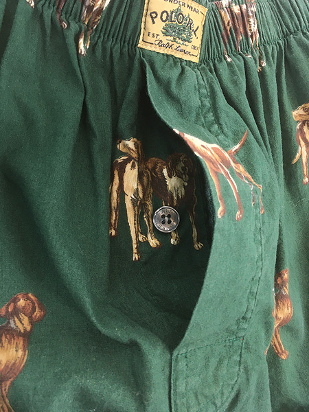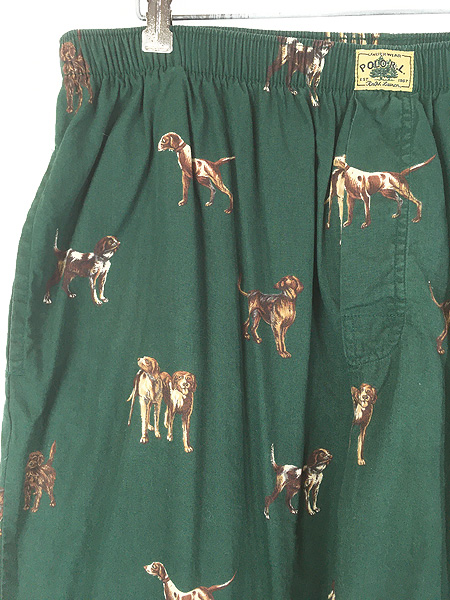 古着 Polo Ralph Lauren 犬 わんちゃん 総柄 パジャマ パンツ L