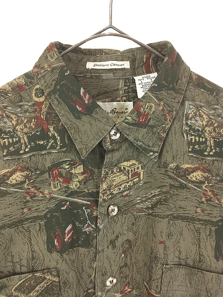 [1] 古着 90s Eddie Bauer 名品 「Elkhorn Twill」 釣り具 汽車 船 総柄 コットン ツイル シャツ L[2] 古着 90s Eddie Bauer 名品 「Elkhorn Twill」 釣り具 汽車 船 総柄 コットン ツイル シャツ L[3] 古着 90s Eddie Bauer 名品 「Elkhorn Twill」 釣り具 汽車 船 総柄 コットン ツイル シャツ L[4] 古着 90s Eddie Bauer 名品 「Elkhorn Twill」 釣り具 汽車 船 総柄 コットン ツイル シャツ L[5] 古着 90s Eddie Bauer 名品 「Elkhorn Twill」 釣り具 汽車 船 総柄 コットン ツイル シャツ L[6] 古着 90s Eddie Bauer 名品 「Elkhorn Twill」 釣り具 汽車 船 総柄 コットン ツイル シャツ L