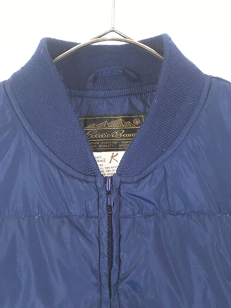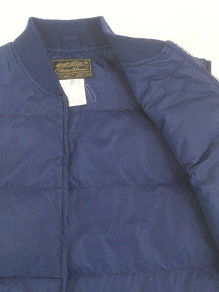 古着 80s Eddie Bauer 軽量 ナイロン シェル ボリューム ダウン ベスト ネイビー L
