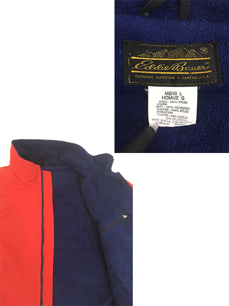 古着 80s USA製 Eddie Bauer フリース ライナー パデッド シェルド ウォームアップ ジャケット レッド L
