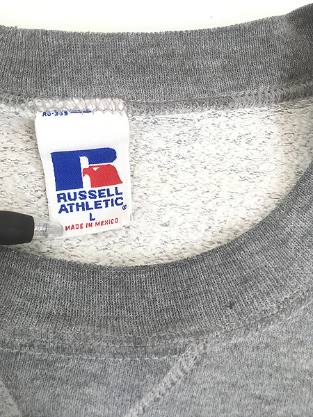 古着 90s Russell 無地 プレーン 前V セットイン スウェット トレーナー グレー L