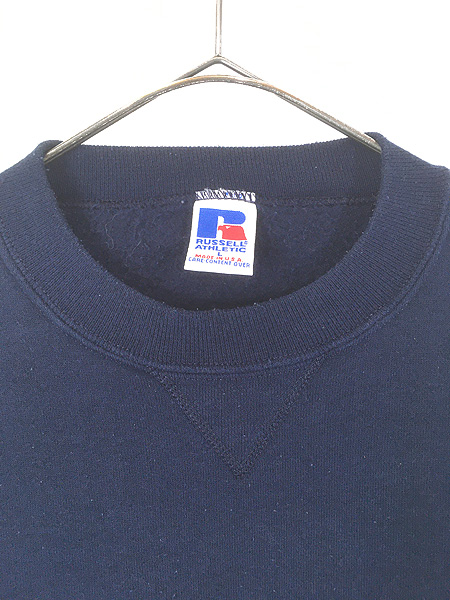 古着 90s USA製 Russell 無地 プレーン 前V セットイン スウェット トレーナー ネイビー L