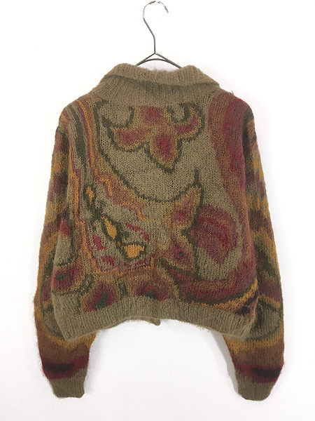 レディース 古着 90s JEANNE PIERRE オリエンタル 模様 モヘア ニット カーディガン S