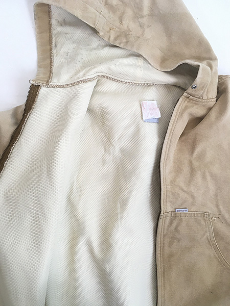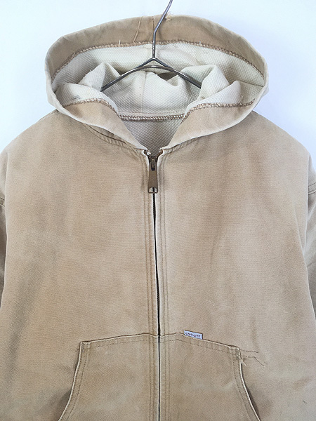 レディース 古着 80s USA製 Carhartt 裏地 メッシュ フェード ブラウン ダック アクティブ パーカー ジャケット L