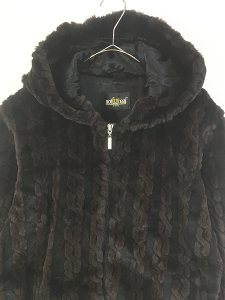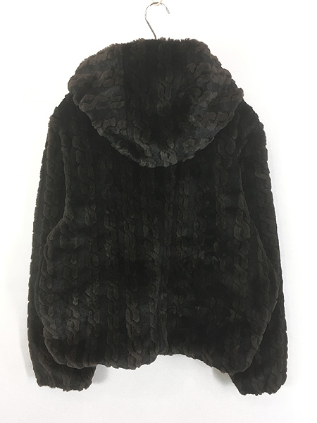 レディース 古着 90s USA製 notfurreal チェーン ケーブル パターン フェイクファー フーディ ジャケット L