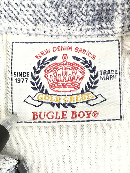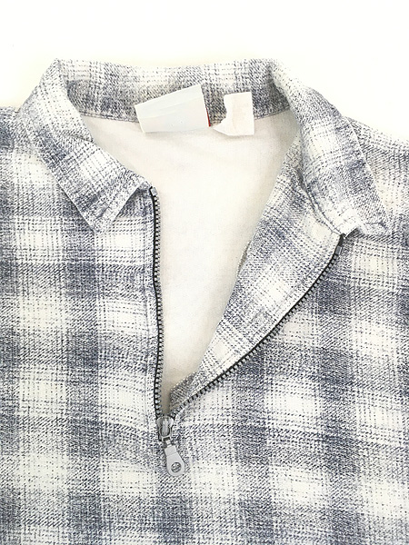 古着 90s BUGLE BOY ネイビー × ホワイト オンブレ シャドー チェック ハーフジップ フランネル コットン シャツ XL