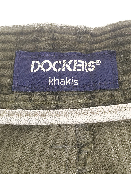古着 90s Dockers 446-9630 太畝 オリーブ コーデュロイ タック パンツ コーズ ストレート W34 L29