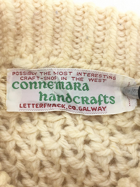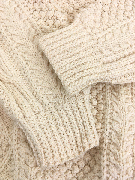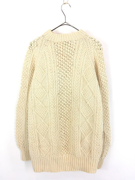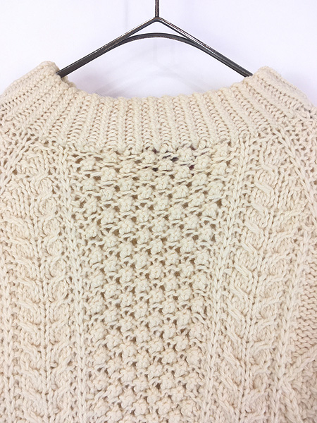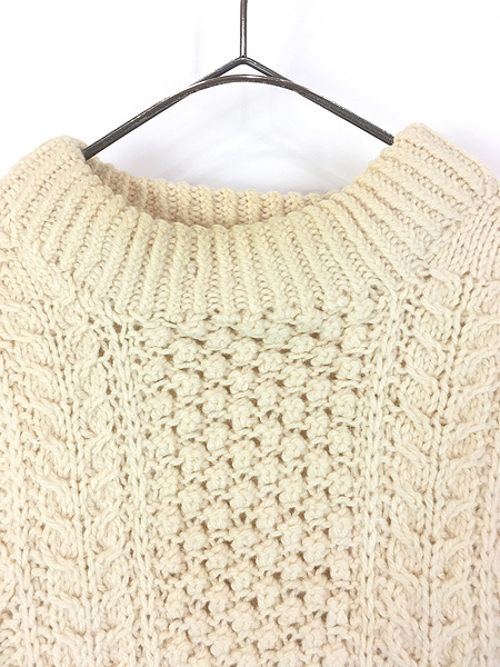 古着 70s Ireland製 connemara handcrafts ポップコーン アラン フィッシャーマン ローゲージ ウール ハンド ニット セーター XL位