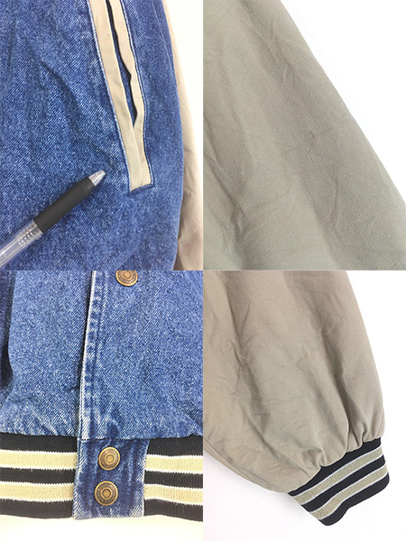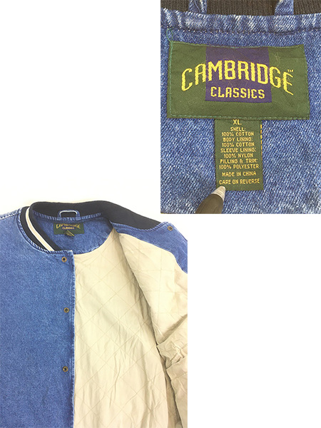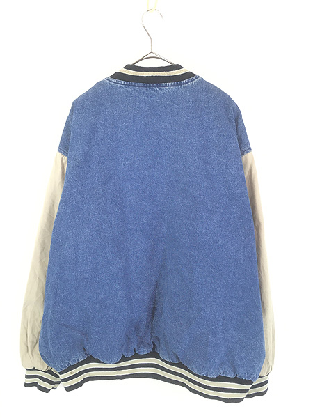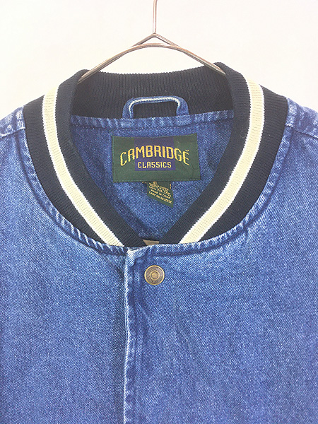 古着 90s Cambridge リブライン パデッド ブルー デニム スタジアム ジャケット スタジャン XL