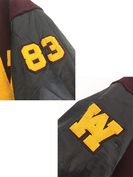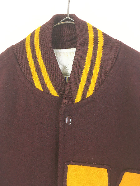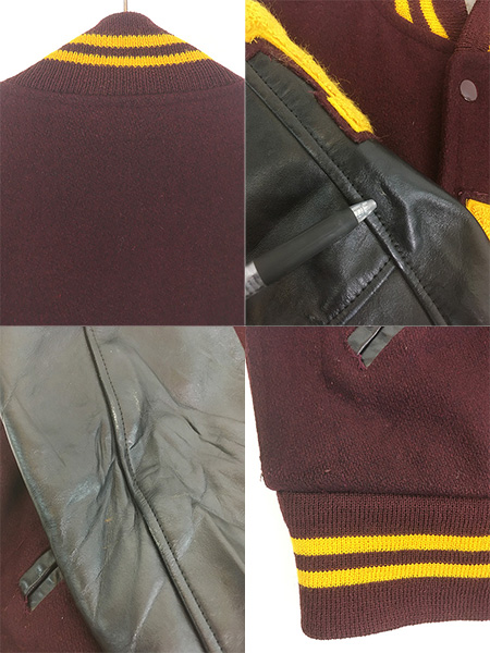 古着 60s SPORT KING 本革 レザー × メルトン ウール スタジアム ジャケット スタジャン 42