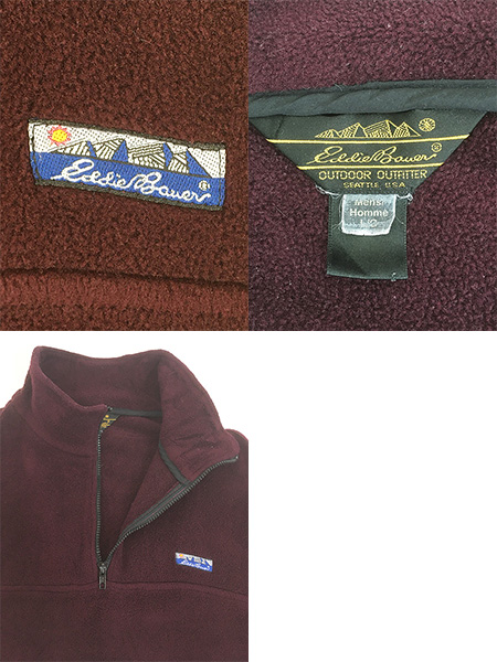 古着 80s Eddie Bauer ハーフジップ プルオーバー フリース ジャケット ワイン L