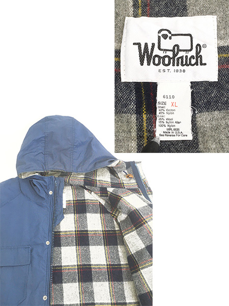 古着 70s USA製 WoolRich チェック ウール ライナー 60/40 クロス マウンテン パーカー マウンパ XL