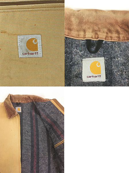 古着 90s- Carhartt 裏地 ストライプ ブランケット ブラウン ダック デトロイト ジャケット L位