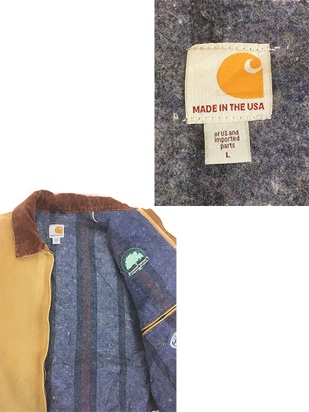 古着 10s USA製 Carhartt 裏地 ストライプ ブランケット BRN ブラウン ダック デトロイト ジャケット L位