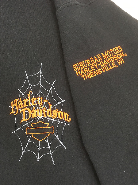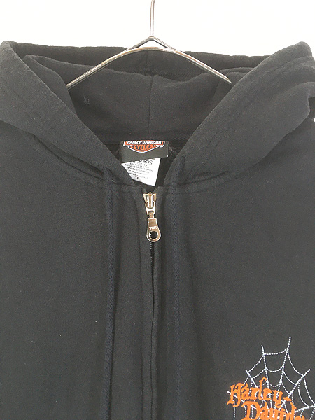 古着 HARLEY DAVIDSON スパイダーウェブ 刺しゅう スウェット ジップ パーカー 1X