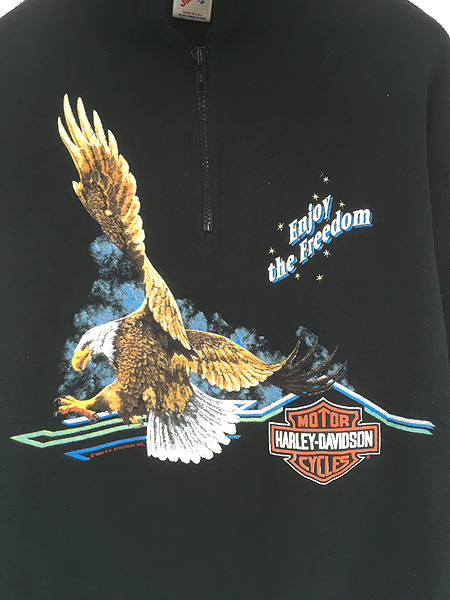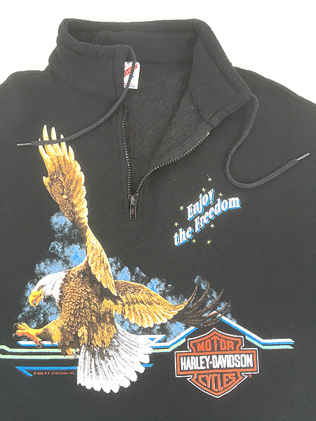 古着 90s USA製 HARLEY DAVIDSON イーグル ハーフジップ スタンドカラー 襟付き スウェット トレーナー XL