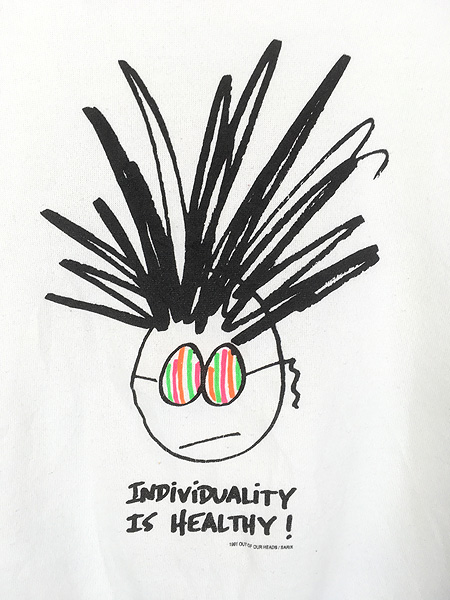 古着 90s USA製 「INDiviDUALiTY IS HEALTHY!」 フェイス ポップ アート スウェット トレーナー L
