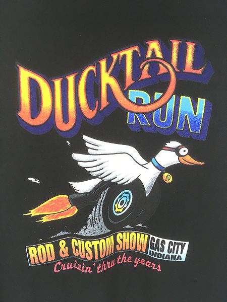 古着 90s DUCKTAIL RUN アヒル カスタム モーターサイクル アニマル ポップ アート スウェット トレーナー XL