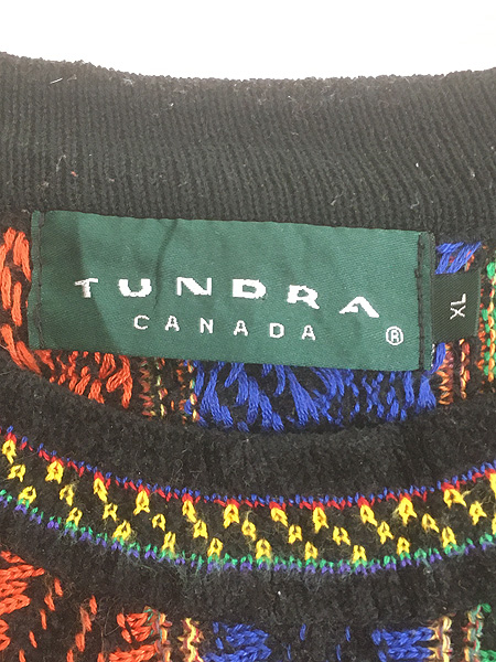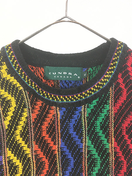古着 90s Canada製 TUNDRA カラフル ジグザグ ストライプ コットン ニット セーター XL