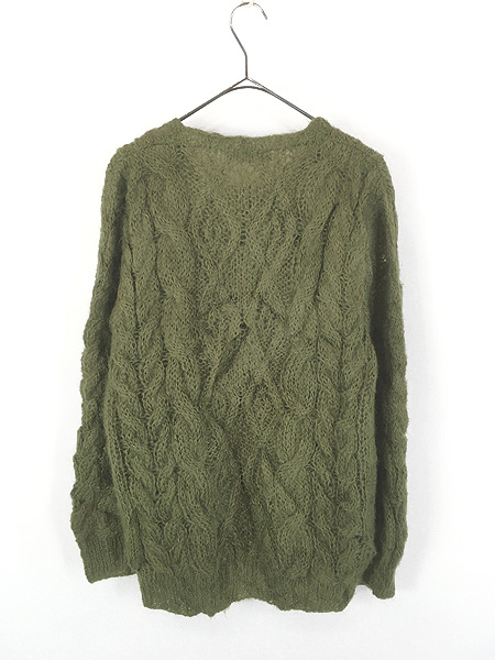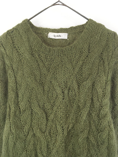 レディース 古着 80s 日本製 Itokin ケーブル編み モヘアルック シャギー ウール ニット セーター L位
