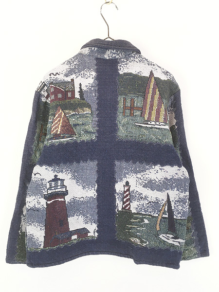 レディース 古着 90s KEREN hart ヨット 灯台 海 総柄 ゴブラン ジャケット L