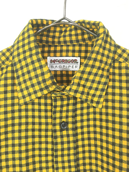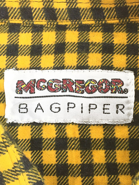 古着 90s McGREGOR BAGPIPER イエロー × ブラック チェック コットン フランネル シャツ ネルシャツ M