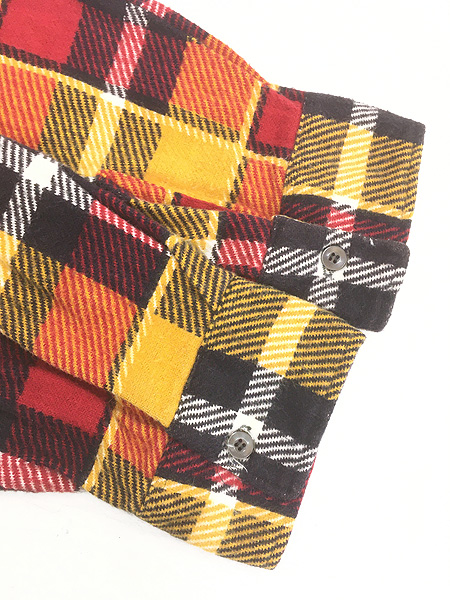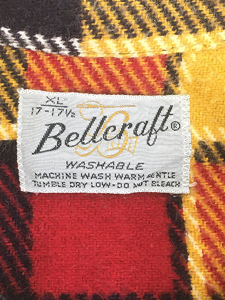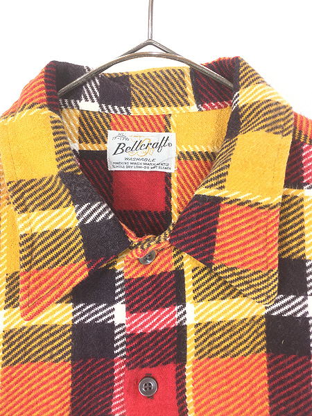 古着 70s USA製 Bellcraft イエロー × レッド × ブラック チェック ヘビー フランネル シャツ ヘビネル XL ミント!!