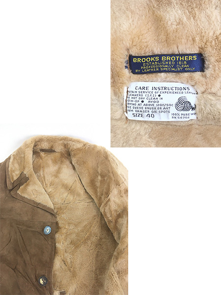 古着 80s Brooks Brothers 本革 ムートン レザー ランチ コート 40R ミント!!