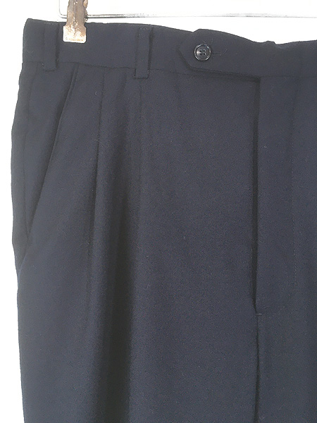 古着 80s Burberrys 上質 ネイビー ウール ギャバジン スラックス タック パンツ ストレート W33 L29