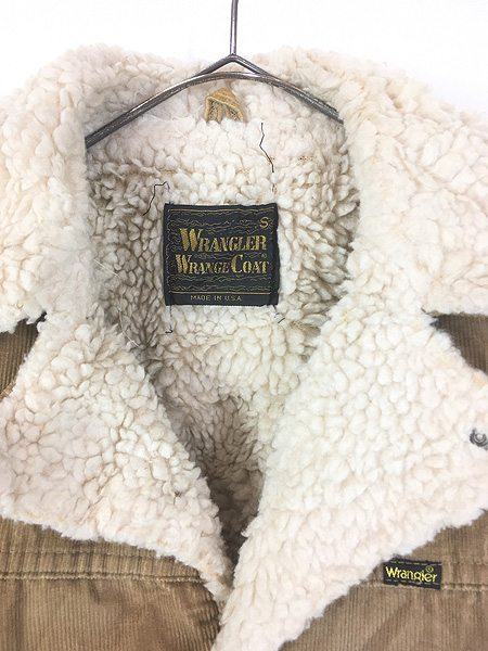 古着 70s USA製 Wrangler 「Wrange Coat」 ブラウン コーデュロイ ボア ランチ ジャケット S