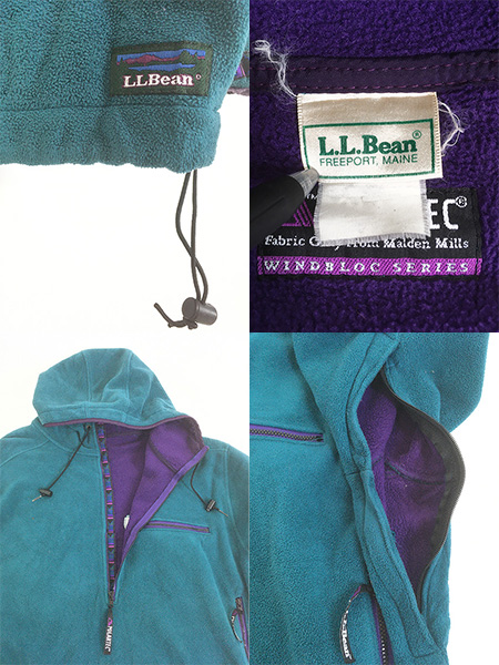 古着 90s LL Bean 名作 「Windbloc Series」 チロリアンテープ Polartec フリース プルオーバー フーデッド ジャケット パーカー XL位