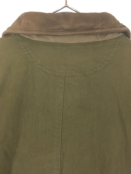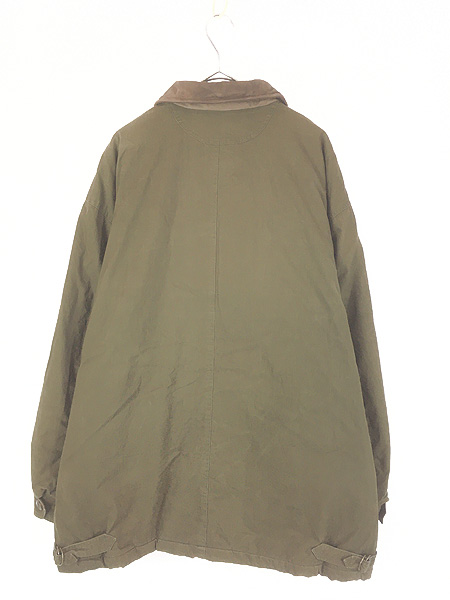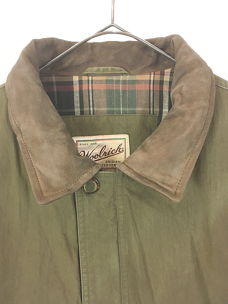 古着 00s WoolRich 本革 レザー襟 光沢 コットンサテン パデッド カバーオール ジャケット XL