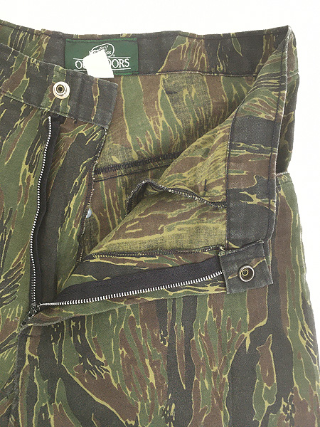 古着 80s Bass Pro Shops タイガー ストライプ カモ 迷彩 4ポケット コットン アウトドア パンツ 32