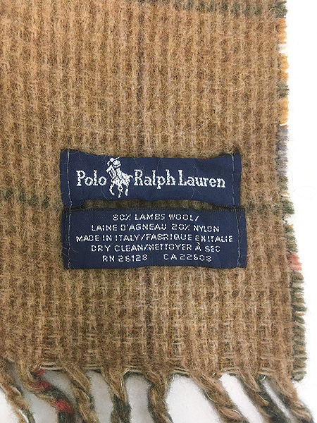 雑貨 古着 Scotland製 Polo Ralph Lauren ワンポイント ポニー 刺しゅう チェック ウール マフラー ストール