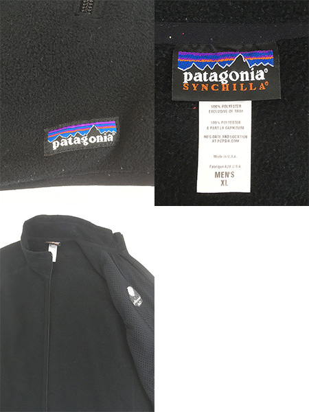 古着 11s USA製 Patagonia 「hp」 PC コンピューター ソフトウェア シンチラ フリース ベスト ブラック XL